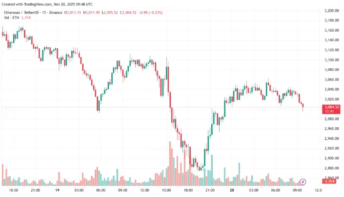 В то время как биткоин сталкивается с неопределенностью, цена Ethereum протестировала ключевой уровень поддержки в районе $2800. Исторически эта отметка выступала дном рыночных циклов, что может сигнализировать о потенциальном восстановлении. Аналитик под псевдонимом MAC_D46035 отметил, что уровень $2800 является важным на уровне цепочки, что может указывать на возможность отскока.